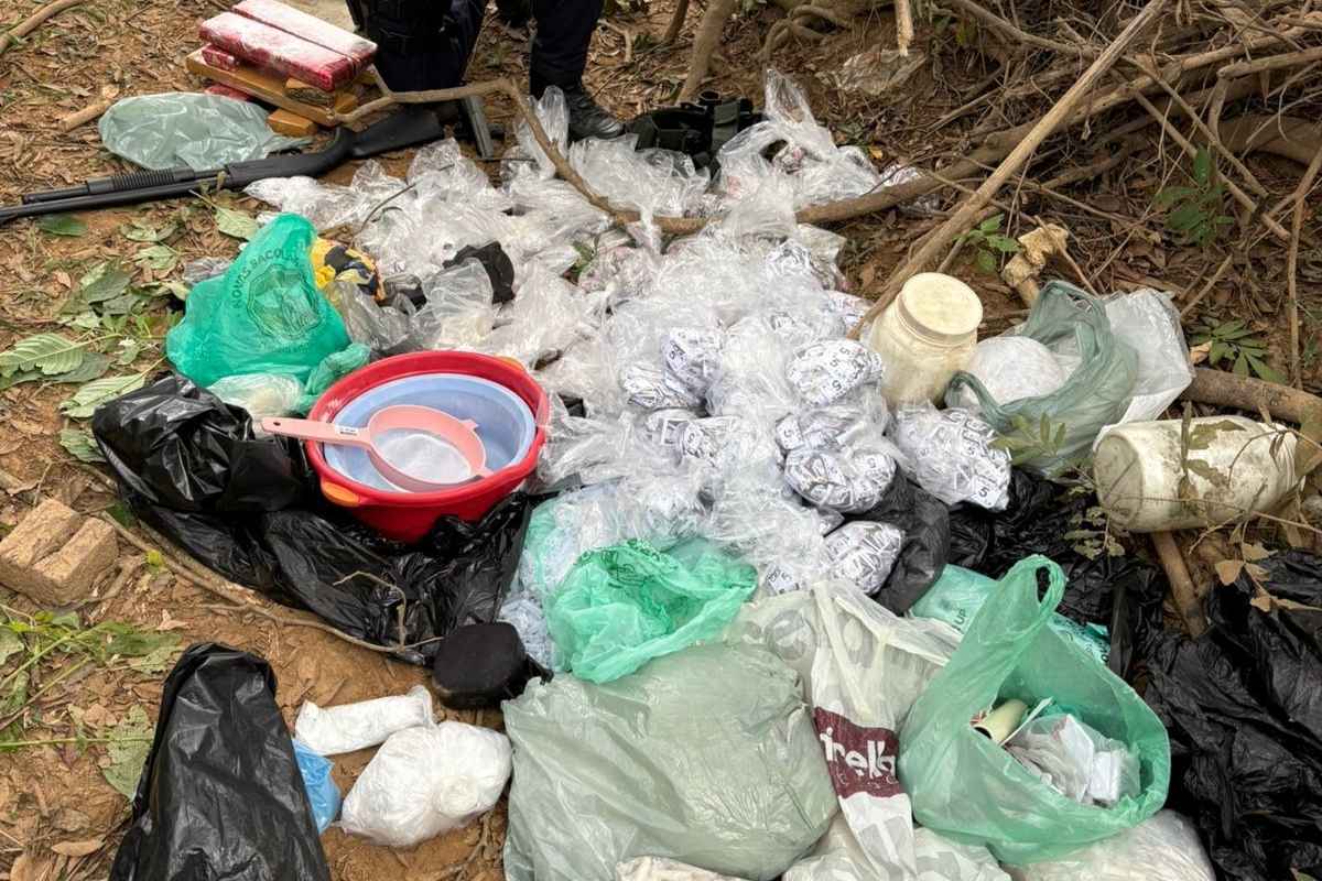 No local, os agentes apreenderam mais de 40 kg de drogas, incluindo crack, maconha, cocaína, haxixe e até LSD. A operação contou com o apoio do 38º BPM, devido à extensão do terreno da residência.