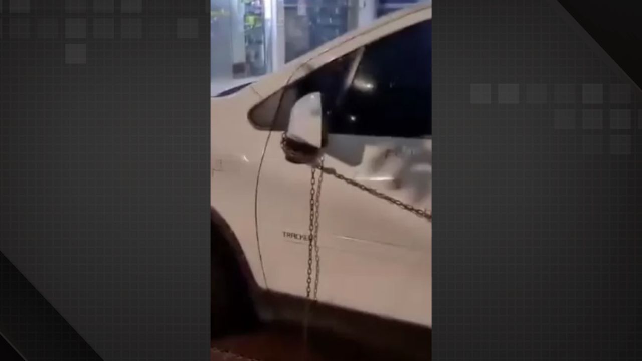Motorista tem carro acorrentado após estacionar em vaga privativa