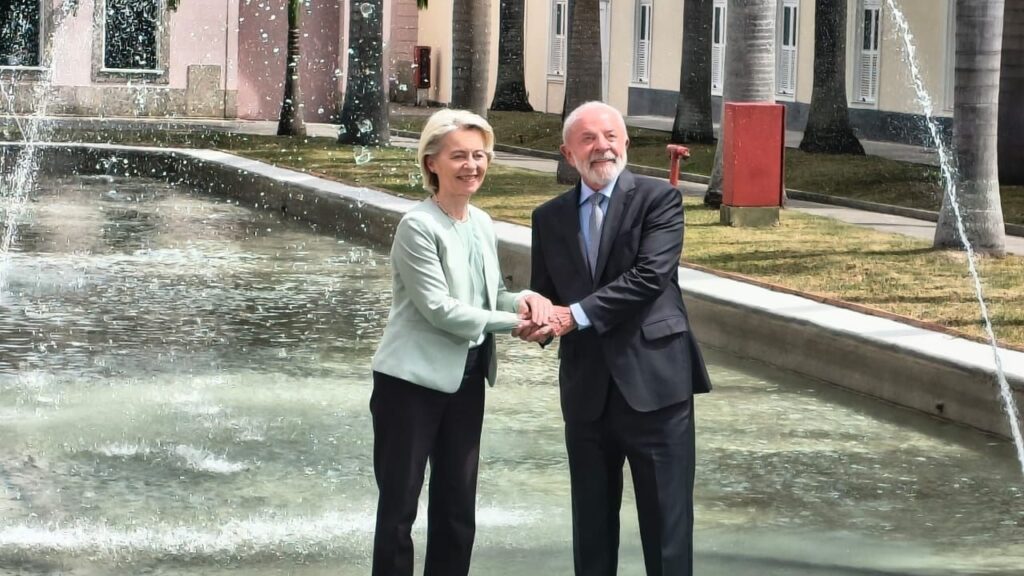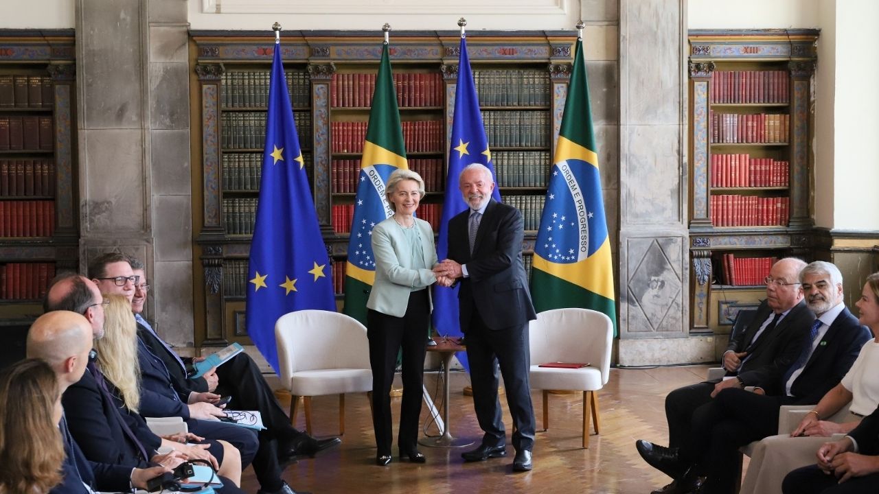 O presidente Luiz Inácio Lula da Silva recebeu, nesta sexta-feira, (16), a presidente da Comissão Européia, Ursula von der Leyen, no Palácio Itamaraty, no Centro do Rio. Eles discutiram o acordo de Parceria Mercosul-União Européia, que vai ser assinado neste sábado, em Assunção no Paraguai. Lula disse que a assinatura será algo que vai entrar para a história.