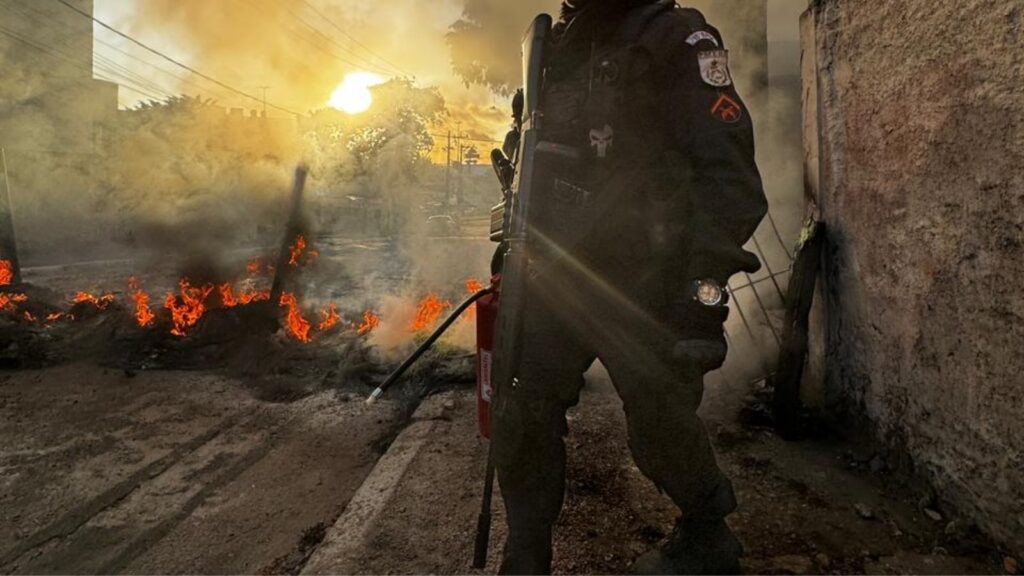De acordo com a polícia, criminosos incendiaram barricadas com pneus e veículos. A fumaça preta se espalhou por vários bairros da Zona Norte e chamou a atenção de motoristas e moradores.