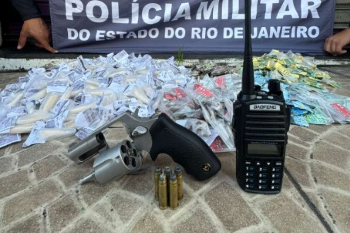 Militares do 16º BPM agiram com base em denúncia anônima; suspeito de tráfico foi preso após confronto armadoUma operação do 16º BPM (Olaria) com apoio do Disque Denúncia resultou na apreensão de um arsenal de drogas e armamentos na Comunidade do Quitungo, em Brás de Pina, na Zona Norte do Rio, nesta quarta-feira (28). A ação teve como alvo criminosos ligados à facção Comando Vermelho (CV). Um homem foi preso em flagrante por tráfico de drogas.