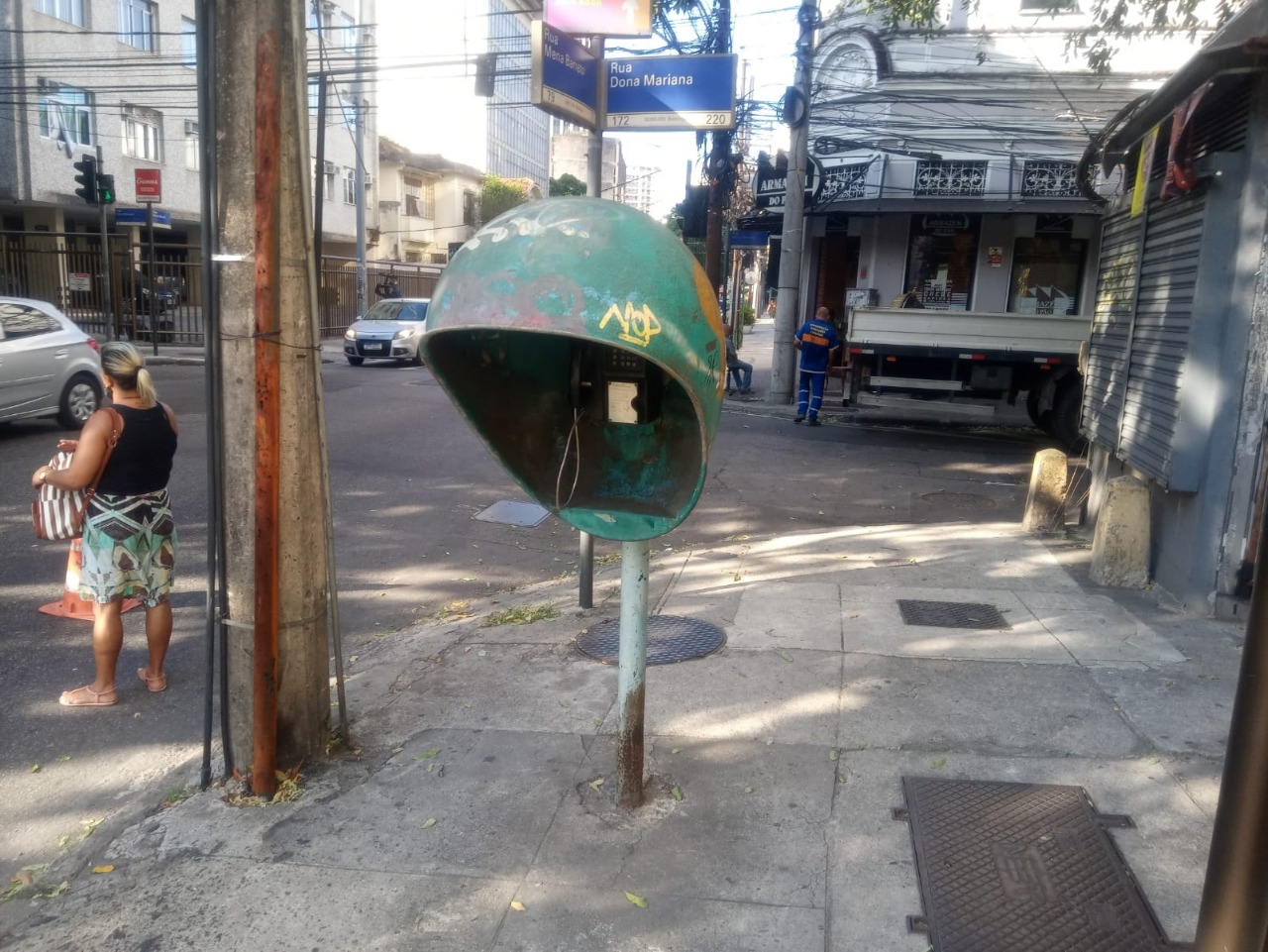 Pelo menos oito Telefones de Uso Público (TUP), popularmente conhecidos como orelhões, estão sendo removidos das ruas de Copacabana, todos estão abandonados e quebrados. O trabalho faz parte da iniciativa da subprefeitura da Zona Sul de ordenar o bairro e organizar o que ficou no abandono. Além das ações rotineiras de ordenamento que acontecem diariamente visando a desobstrução do passeio público e também as ações de acolhimento as pessoas em situação de rua, as equipes da subprefeitura também estão empenhadas em retirar das ruas o que está sem uso, caso dos orelhões.