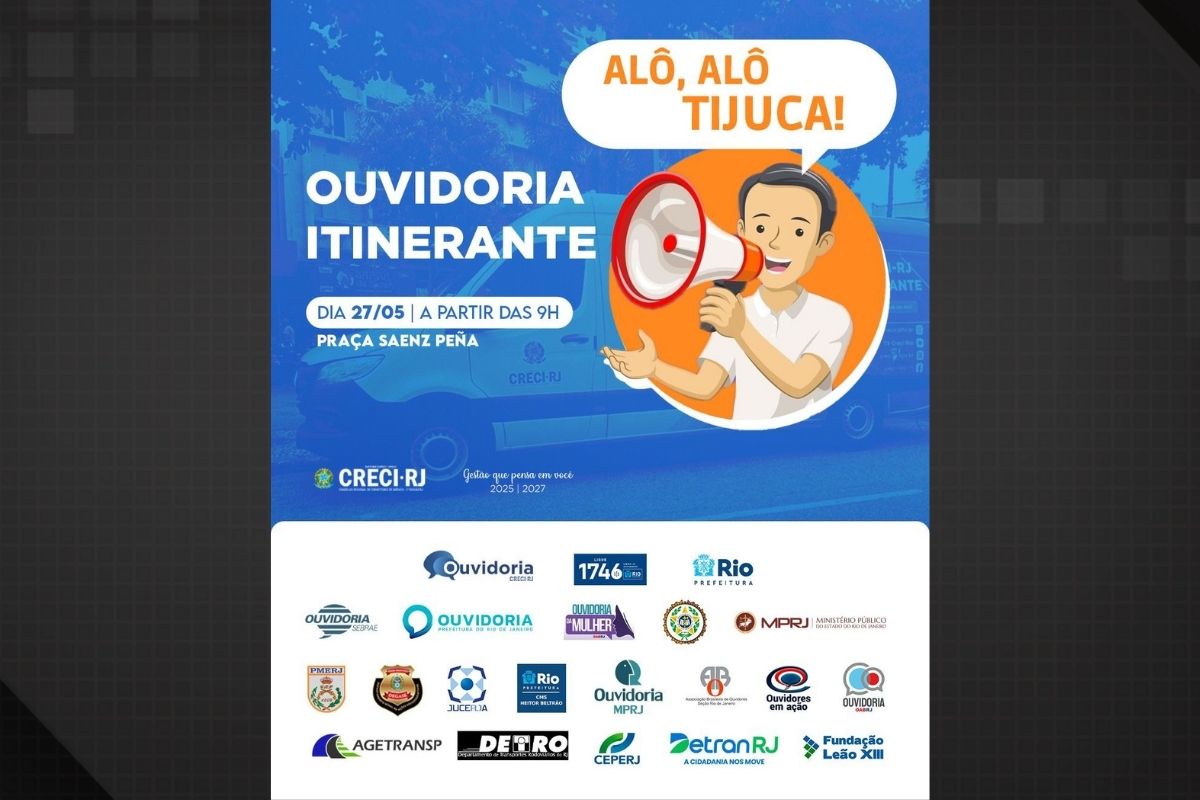 A Praça Saens Peña, na Tijuca, na Zona Norte do Rio, recebe nesta terça-feira (27), mais uma edição do projeto Ouvidoria Itinerante, uma iniciativa do Creci-RJ em parceria com ouvidorias de diversas instituições. A ação tem como objetivo incentivar a participação cidadã e promover o diálogo direto entre a população e os órgãos públicos.