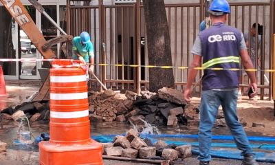 Uma tubulação se rompeu na rua Barão do Flamengo, na Zona Sul do Rio, e alagou vários prédios da região. Técnicos da concessionária Águas do Rio...