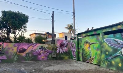 Cores vibrantes, flores, borboletas, abelhas, beija-flores e joaninhas. O mural de mais de 46 metros quadrados, pintado pelo artista baiano Leandro da Conceição Santana, tem tudo...