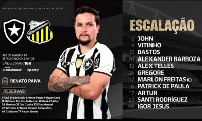 Botafogo e Novorizontino estão escalados para o amistoso no Estádio Nilton Santos. Confira as formações iniciais: