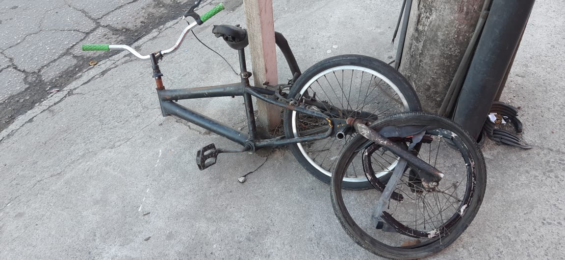 Bicicleta do jovem ficou destruída (Foto:Reprodução)