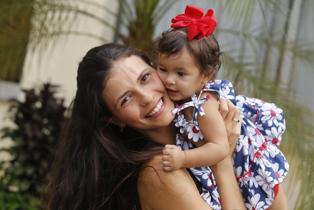 “Minha filha nasceu comigo de cócoras e com meu marido segurando minha mão. Logo após o nascimento, a equipe médica colocou Lara em meus braços e fiquei em contato pele a pele com minha bebê. Sempre tive o sonho de ter um parto em que eu fosse a protagonista, com respeito à ciência e aos meus desejos. Foram momentos inesquecíveis”, conta Fernanda Abreu, que fez o pré-natal pelo plano de saúde, mas optou por realizar o parto numa unidade da SES em busca do acolhimento oferecido às mães.