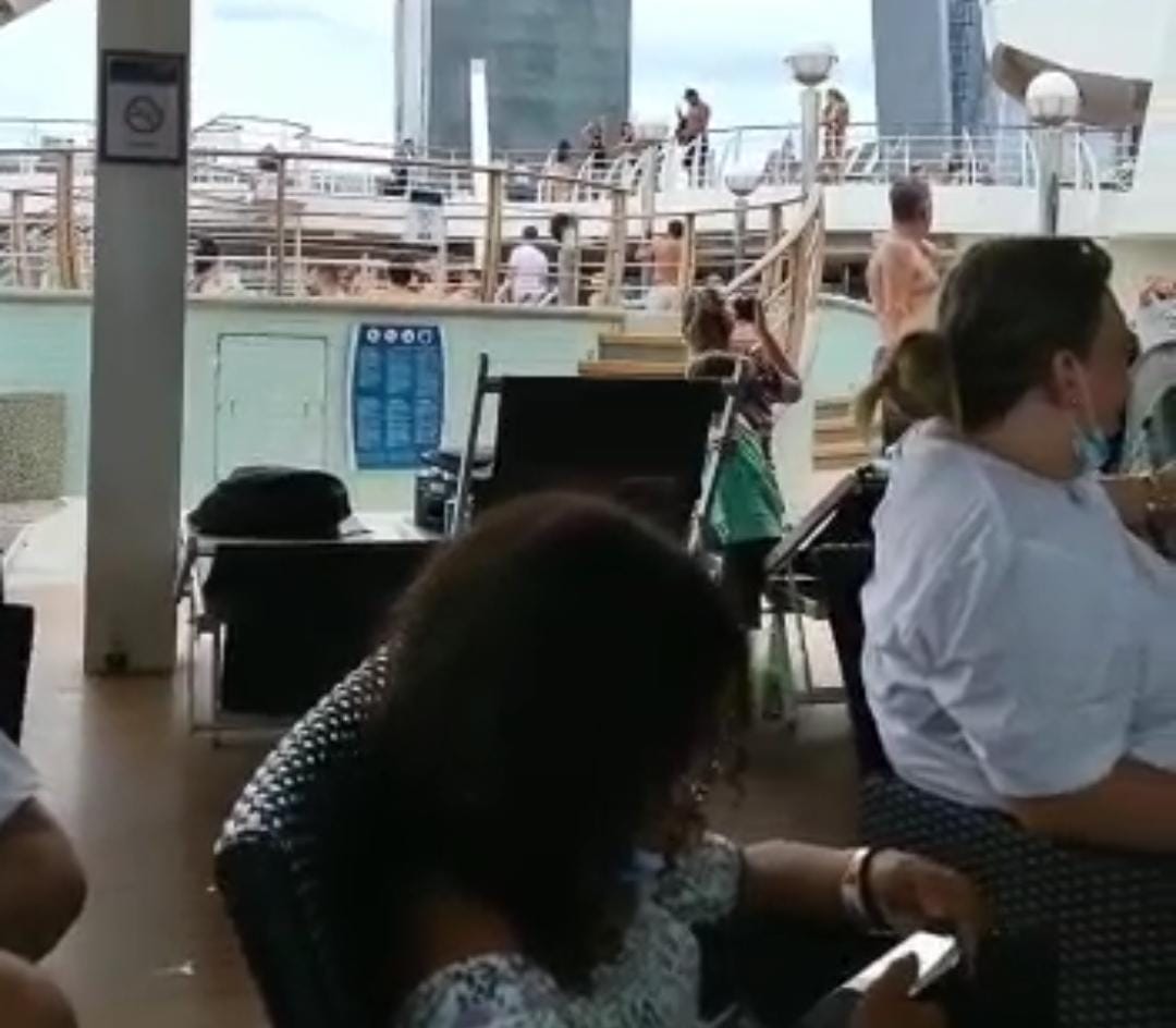“Tem gente na piscina, e outros sentados aqui fora, na área, externa. Os outros estão lá dentro. Estão todos aguardando. Assim que a Anvisa liberar vai começar o desembarque, só que isso você sabe que não tem hora. Mas eles avisaram que o navio não está em quarentena”, relatou a médica.