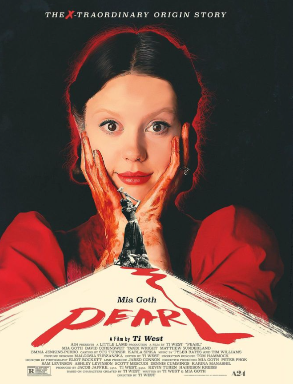 O filme de Ti West é o prelúdio para “X” e acompanha a juventude da personagem-título, também vivida por Mia Goth. Ao longo da trama, é possível acompanhar Pearl em sua busca louca pela fama, fazendo com que ela cometesse crimes violentos. A trilogia de Ti West será concluída com “MaXXXine”.