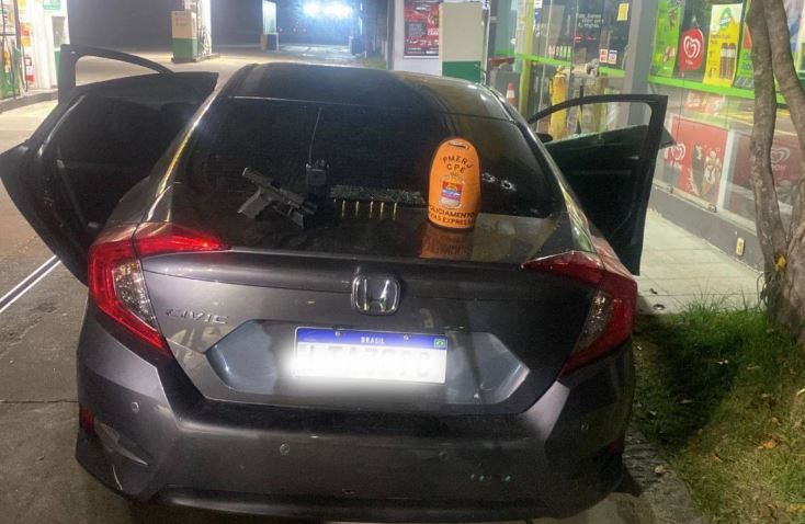 Com o suspeito foi apreendido uma pistola, rádio comunicador e o automóvel usado pelos criminosos