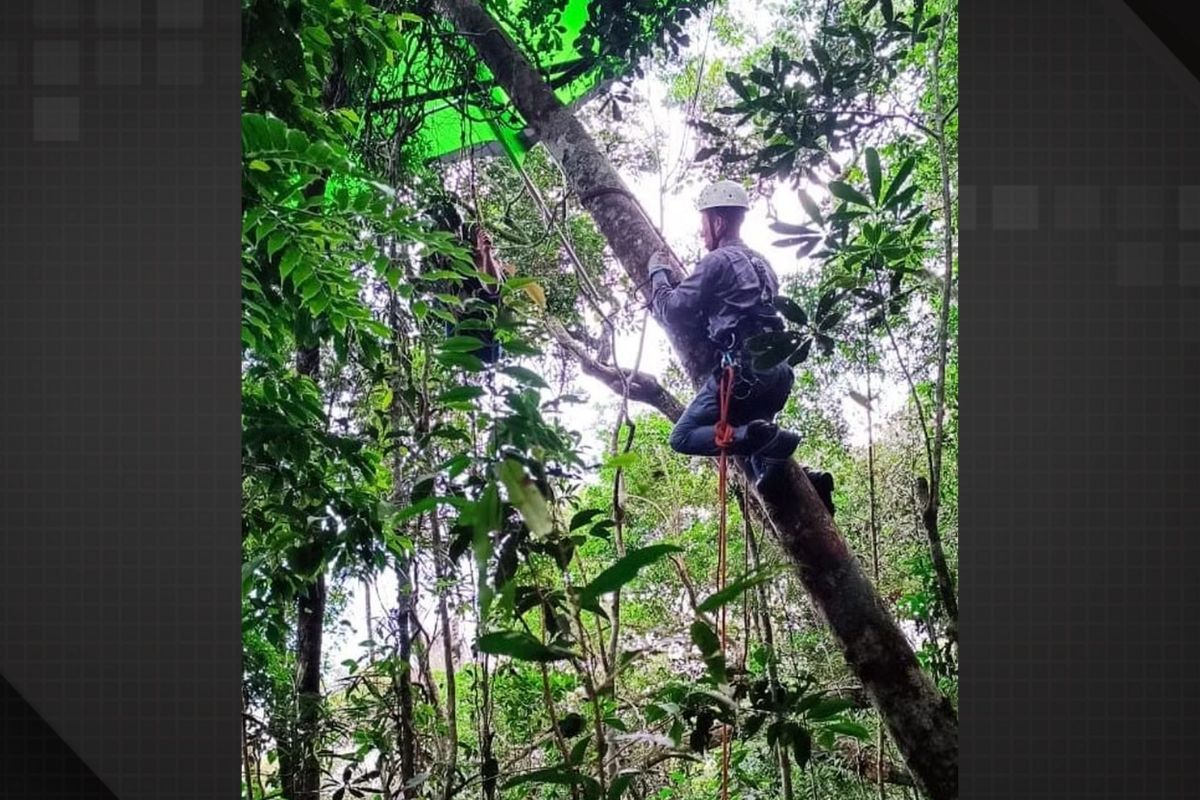Vídeo: piloto de asa-delta fica preso em árvore e precisa de resgate