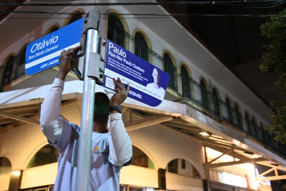 Placas em homenagem ao ator Paulo Gustavo são instaladas em rua de Niterói