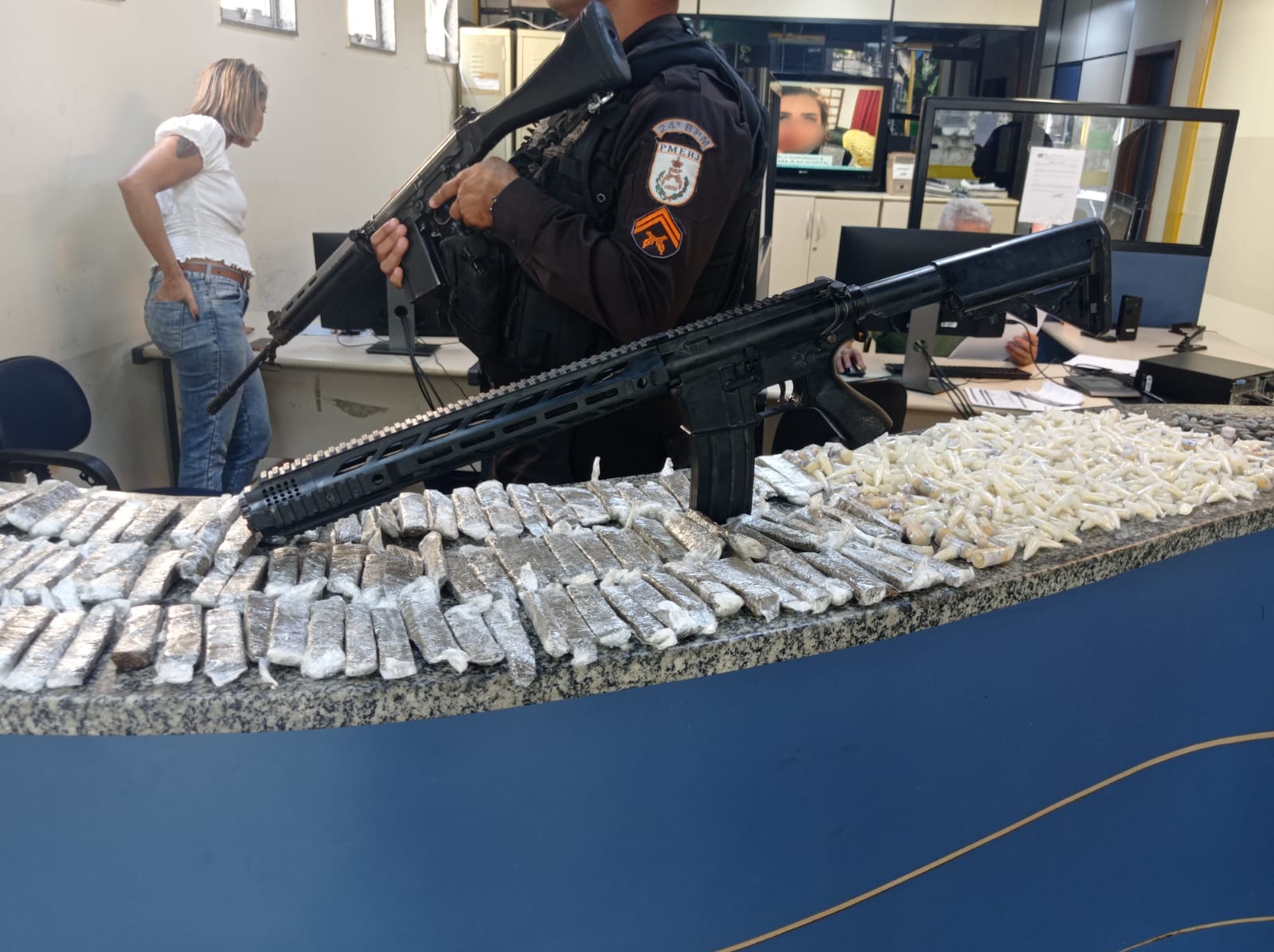 Durante a ação, um grupo de criminosos fortemente armados atirou contra a equipe da PM. Os militares revidaram e após o confronto, os agentes conseguiram apreender 121 tabletes de maconha, uma réplica de fuzil e diversas trouxinhas e tubos de cocaína. Próximo aos materiais apreendidos, os agentes encontraram um homem que tinha sido baleado. O preso foi encaminhado para a delegacia da região onde o caso foi registrado.