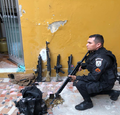 Policiais militares do batalhão de Olaria (16BPM) resgataram uma família que era feita refém, na Rua Guacira, em Brás de Pina, na Zona Norte do Rio. O caso aconteceu na madrugada desta sexta-feira (04). Na ocasião, foi feito um cerco no local e os bandidos se entregaram. Quatro criminosos foram presos. Cinco fuzis, uma granada e rádios de comunicação apreendidos.