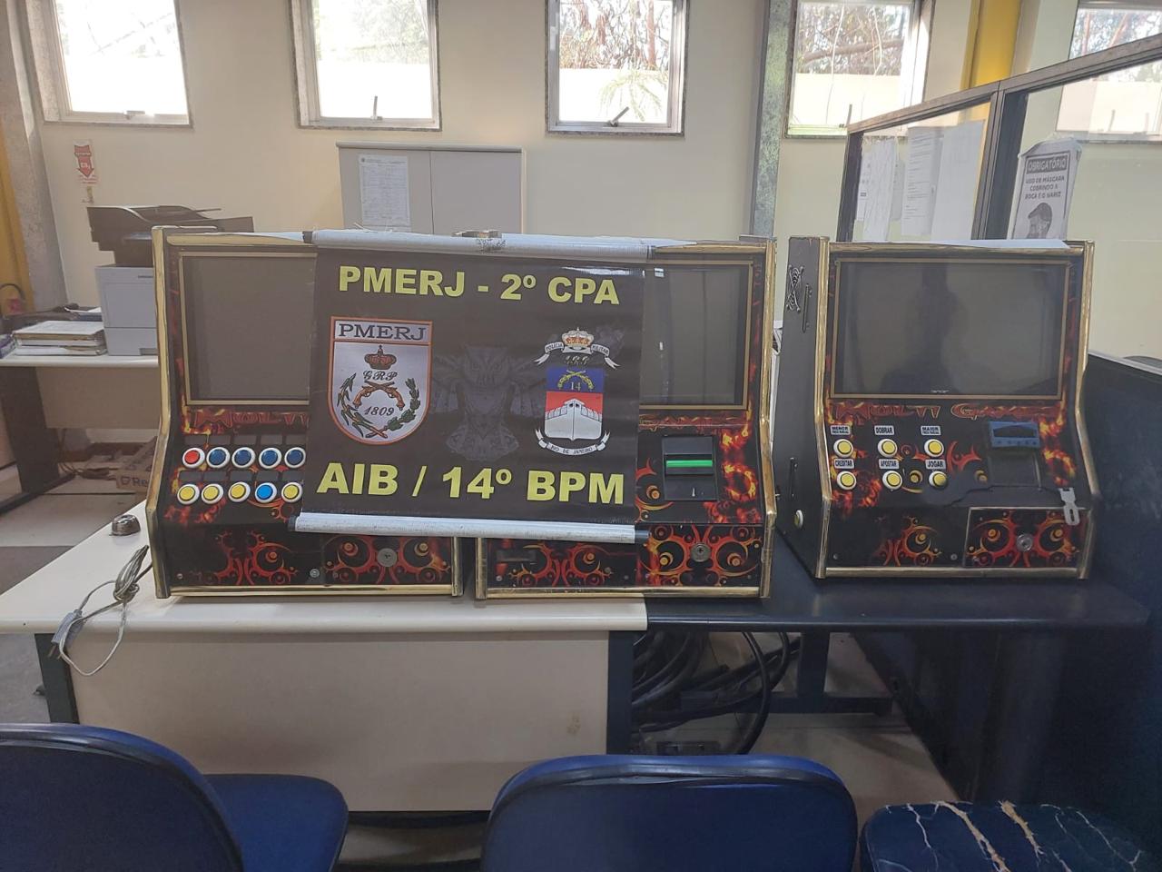 A Polícia Militar apreendeu 32 máquinas de caça-níqueis em diversos estabelecimentos comerciais do Rio de Janeiro, em um desdobramento da operação chamada ‘Sossega Leão’, após informações fornecidas pelo Disque Denúncia.