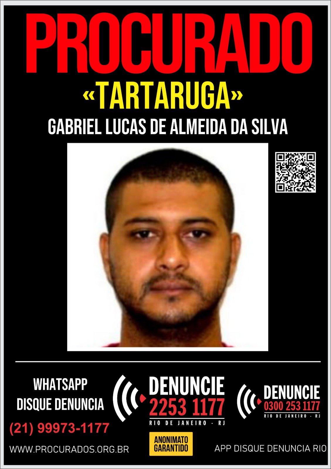 O Disque Denúncia divulgou um cartaz em busca de informações que levem a prisão de Gabriel Lucas de Almeida da Silva, conhecido como “Tartaruga”, de 34 anos, que faz parte de uma quadrilha que furta combustível de tubulações da Baixada Fluminense.