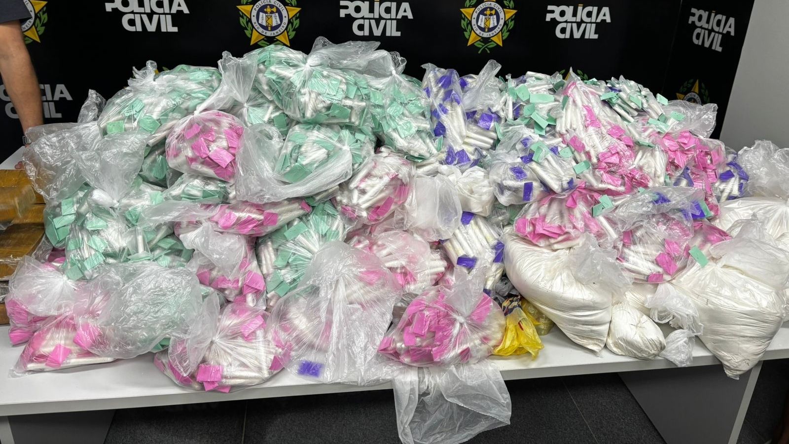 A Polícia Civil desmantelou, nesta quinta-feira (16), um laboratório de refino e endolação de drogas em Rio das Ostras, na Região dos Lagos. A operação, conduzida por agentes da 123ª DP (Macaé), resultou na prisão de sete suspeitos e na apreensão de quase 200 kg de cocaína e 9 kg de maconha, que eram do Comando Vermelho.