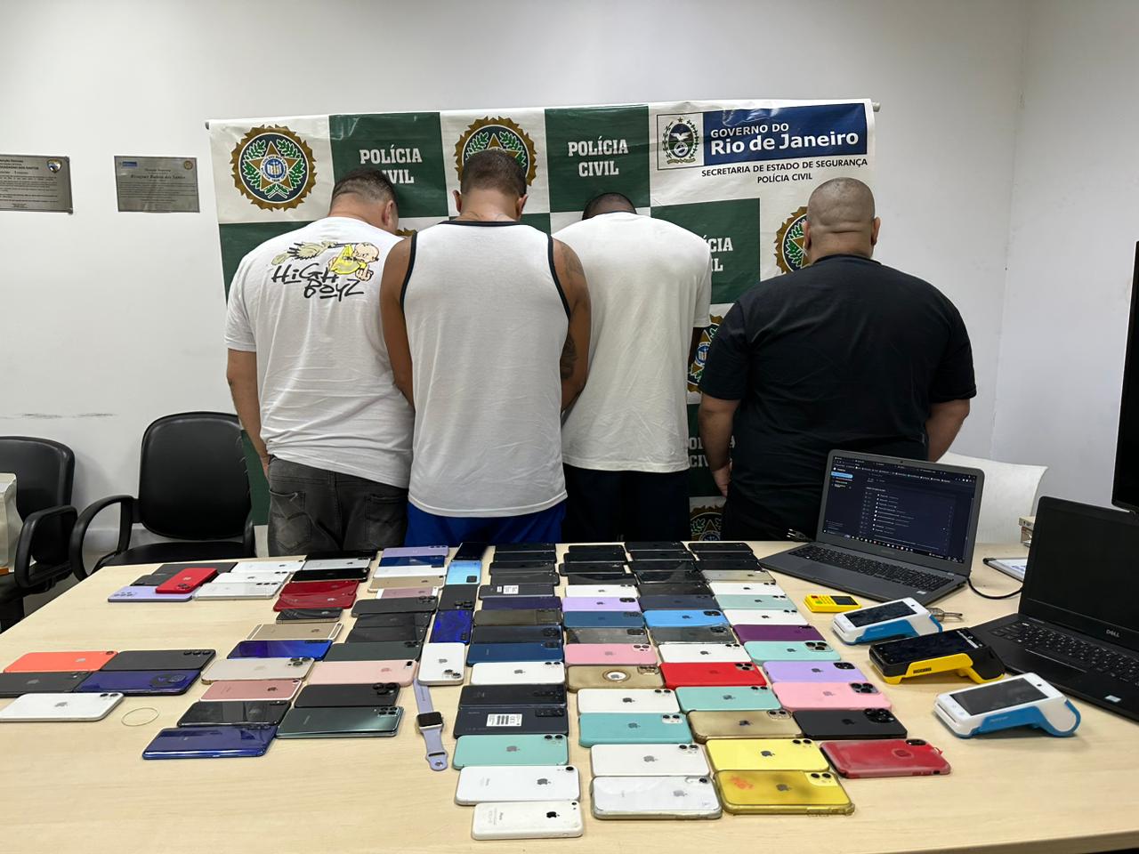 Durante a operação, quatro homens foram presos e mais de 70 aparelhos telefônicos roubados foram apreendidos