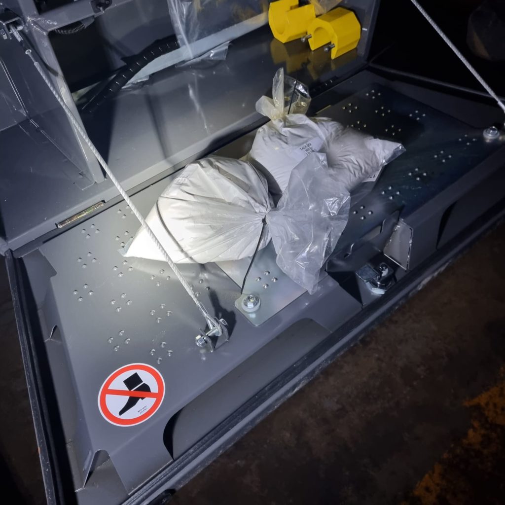 A droga, localizada em compartimentos de bateria de máquinas retroescavadeiras, foi encontrada numa inspeção de rotina por cães farejadores da polícia e tinha como destino, em princípio, o Porto de Monteviéu, no Uruguai.