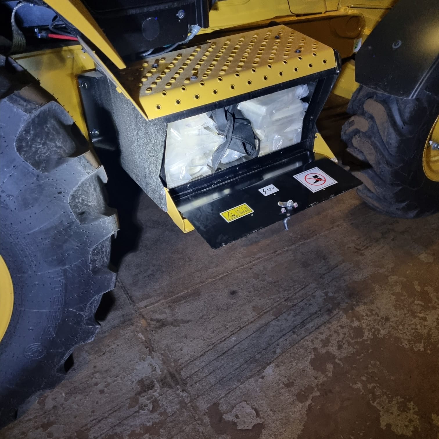 A droga, localizada em compartimentos de bateria de máquinas retroescavadeiras, foi encontrada numa inspeção de rotina por cães farejadores da polícia e tinha como destino, em princípio, o Porto de Monteviéu, no Uruguai.