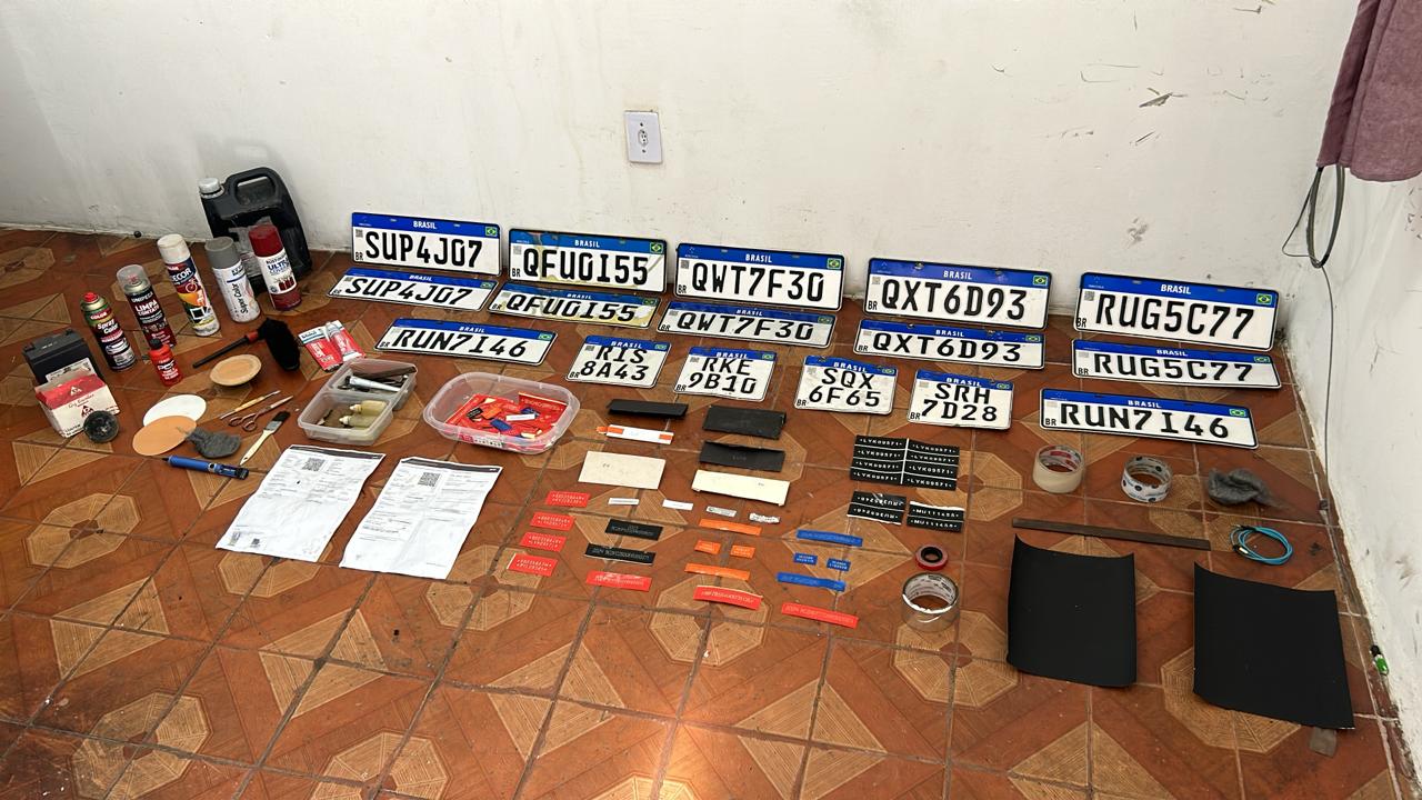 No Parque União, os policiais localizaram materiais para a possível prática de estelionato como uma grande quantidade de cartões de crédito, cédulas falsificadas de identidade, smartphone, notebooks e maquininhas de cartão.