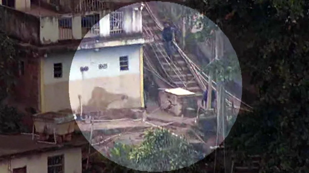 Nas imagens, feitas pela TV Globo, um cão do BAC aparece farejando uma laje da comunidade quando um gato começou a estranhá-lo e os animais começaram a brigar. Em seguida, o policial que acompanhava o farejador deu um bico no gato, jogando-o para longe.