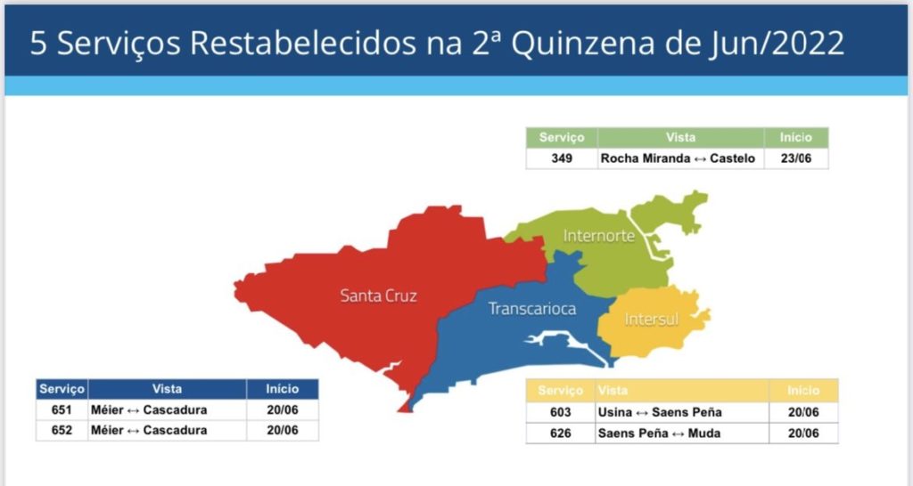 De acordo com o executivo municipal, o retorno dessas linhas faz parte do acordo entre a prefeitura e as empresas de ônibus que operam na cidade do Rio de Janeiro.