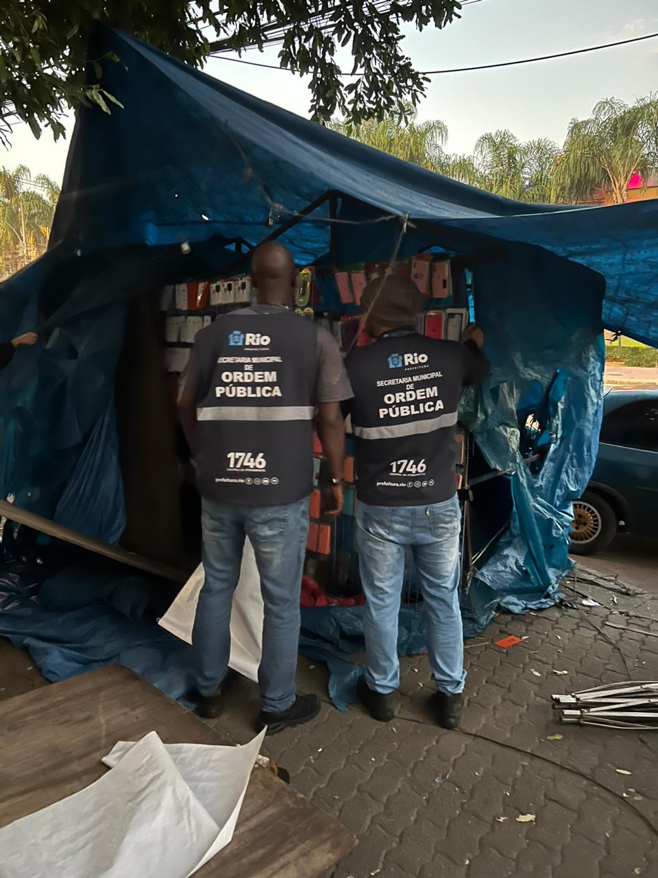 Além disso, centenas de mercadorias como capas de celular, equipamentos eletrônicos, bebidas e chinelos também foram apreendidos, além de mesas, cadeiras, grades e botijão de gás. A Comlurb retirou do local aproximadamente uma tonelada de lixo e detritos.