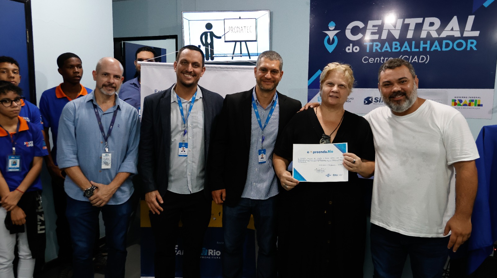 Durante a inauguração da nova unidade, 25 alunos formados no curso de Marketing Digital receberam seus certificados das mãos do secretário municipal de Trabalho e Renda, Everton Gomes, e de Eduardo Magalhães, coordenador do escritório regional Centro e Zona Sul do Sebrae Rio (parceiro da iniciativa) e Leandro Marinho, gerente de atendimento da mesma instituição.