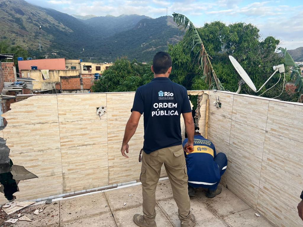A Secretaria de Ordem Pública e a Subprefeitura da Zona Oeste realizaram, nesta quinta-feira (30), a operação de demolição de uma construção irregular na Rua Açu, em cima do Rio Piraquara, na localidade do Barata, em Realengo. O espaço foi construído como uma extensão da casa e funcionava como uma área gourmet.