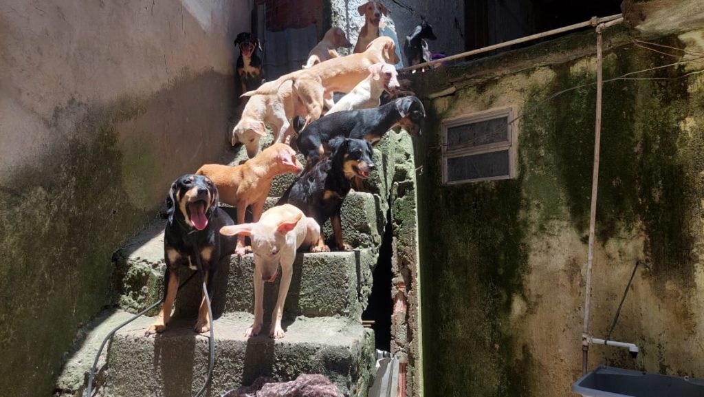 Vinte cachorros adultos e quatro filhotes em condições de maus tratos foram resgatados na comunidade da Rocinha, na Zona Sul do Rio, na tarde desta terça-feira (7).