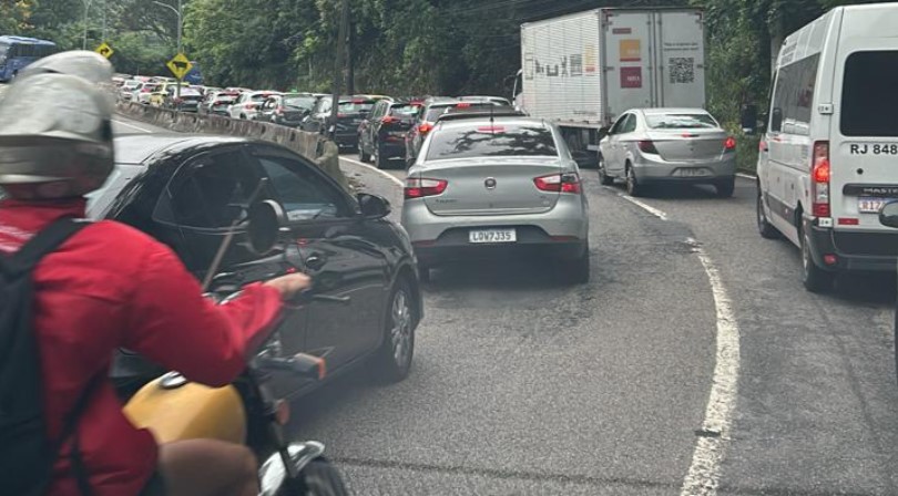 Na Linha Vermelha, no sentido Centro, motoristas encontram trechos de congestionamento desde Vigário Geral até o Caju.