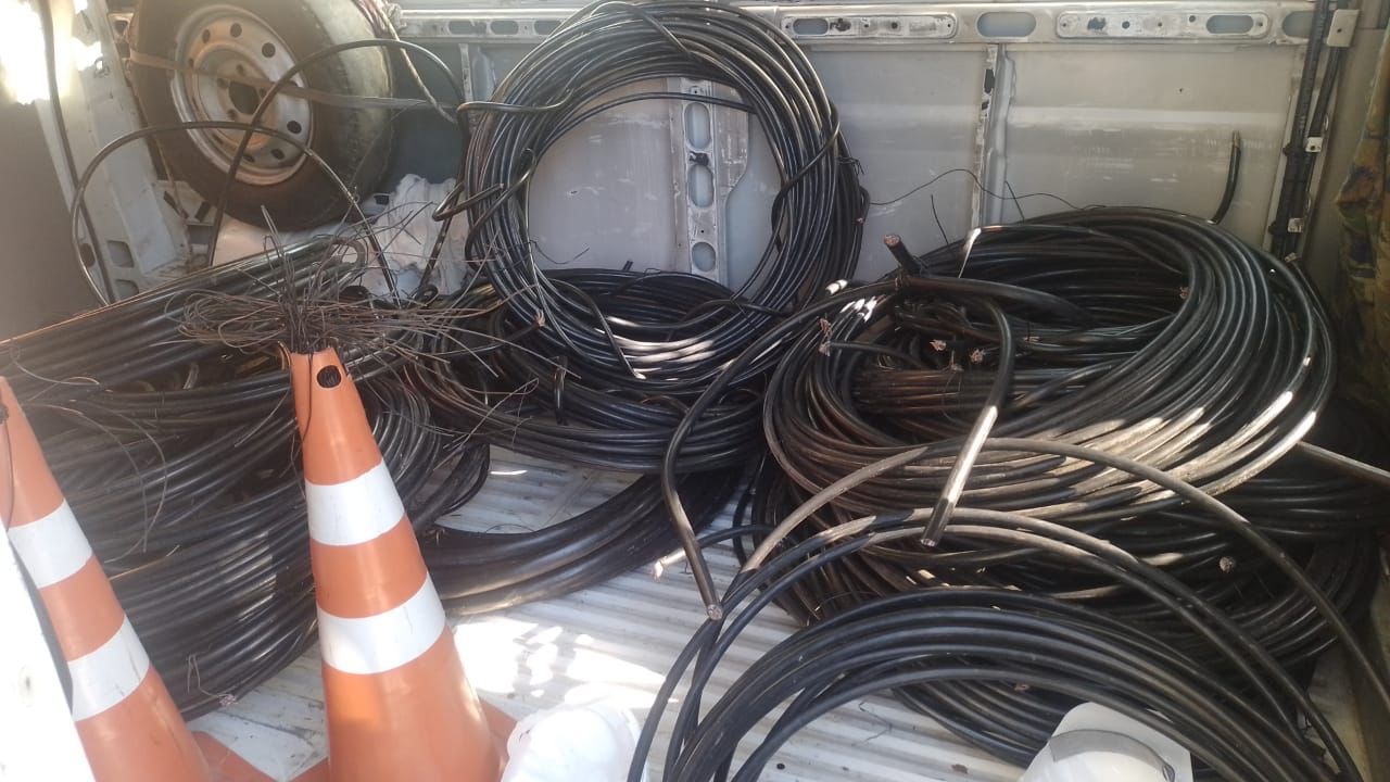 No local, os agentes questionaram os suspeitos, que não souberam informar sobre a ordem de serviço e nem onde ficaria a sede da empresa, informando apenas terem sido contratados para realizar o serviço. Em um veículo caracterizado com a logomarca da empresa, foram localizados os cabos furtados.