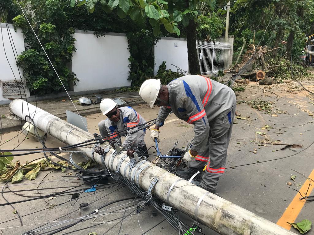 Essas ocorrências envolvem a reconstrução de trechos inteiros da rede, além da substituição dos equipamentos e cabos danificados. Em muitos casos, a empresa atua em parceria com o Corpo de Bombeiros, as prefeituras e a Defesa Civil, que precisam remover as árvores para que os técnicos da companhia iniciem o trabalho.