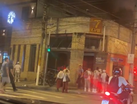 A corporação foi acionada por volta de 22h. Houve correria de moradores da região, e os funcionários do espaço saíram do local a tempo.