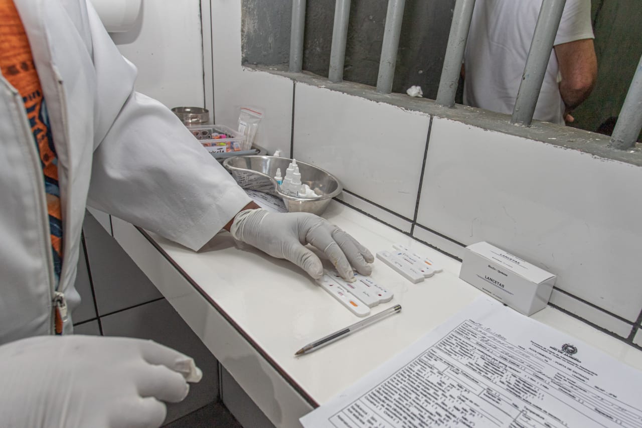 Os internos que chegam à unidade prisional fazem o teste rápido da Covid-19, nos casos sintomáticos, além de exame para tuberculose, teste rápido de HIV, sífilis e hepatite B e C.