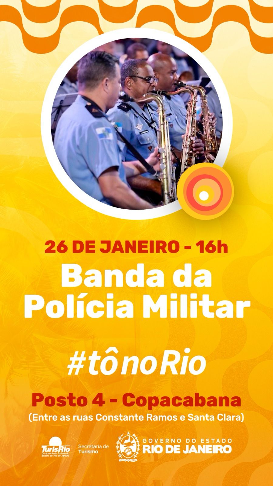 Nesta sexta-feira (26), os músicos da banda da Corporação estarão se apresentando das 16h às 18h, no calçadão da Praia de Copacabana, onde irão relembrar grandes sucessos da música popular brasileira como Caça e Caçador (Fábio Jr), Evidências (Chitãozinho & Xororó), Garota Nota 100 (MC Marcinho) e clássicos de Tim Maia, que dão a cara do verão carioca.