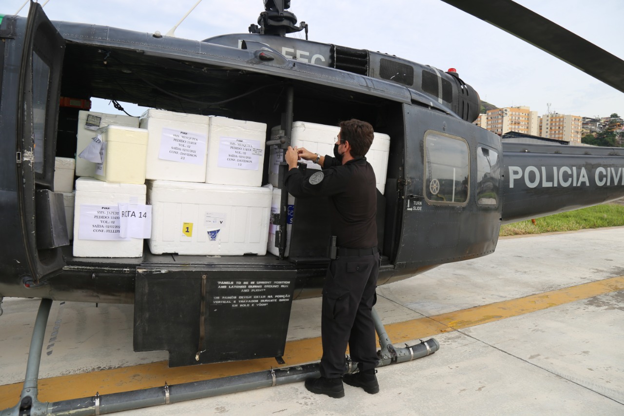 A operação logística contou com apoio de seis aeronaves: uma da SES, uma do Governo do Estado, uma do Corpo de Bombeiros, uma da Polícia Militar e duas da Polícia Civil. Os helicópteros saíram a partir das 7h do Grupamento Aeromóvel da PM e do 12º Batalhão, em Niterói.