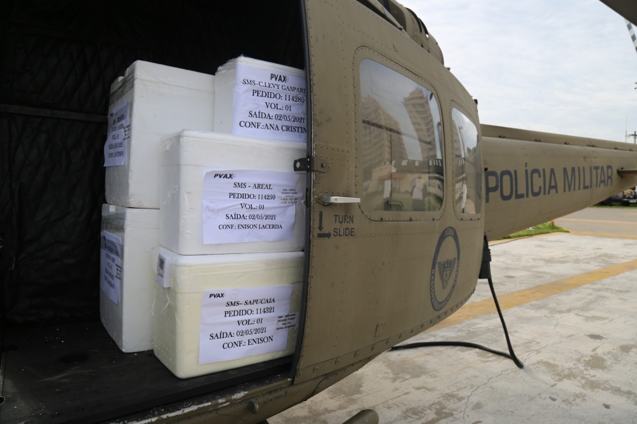 A Secretaria de Estado de Saúde (SES) concluiu em seis horas mais uma entrega aérea realizada, neste domingo (02), a 88 municípios do estado. Foram distribuídas 649.980 doses de vacinas contra Covid-19, sendo 54.160 de CorovaVac e 595.820 de Oxford/Astrazeneca.