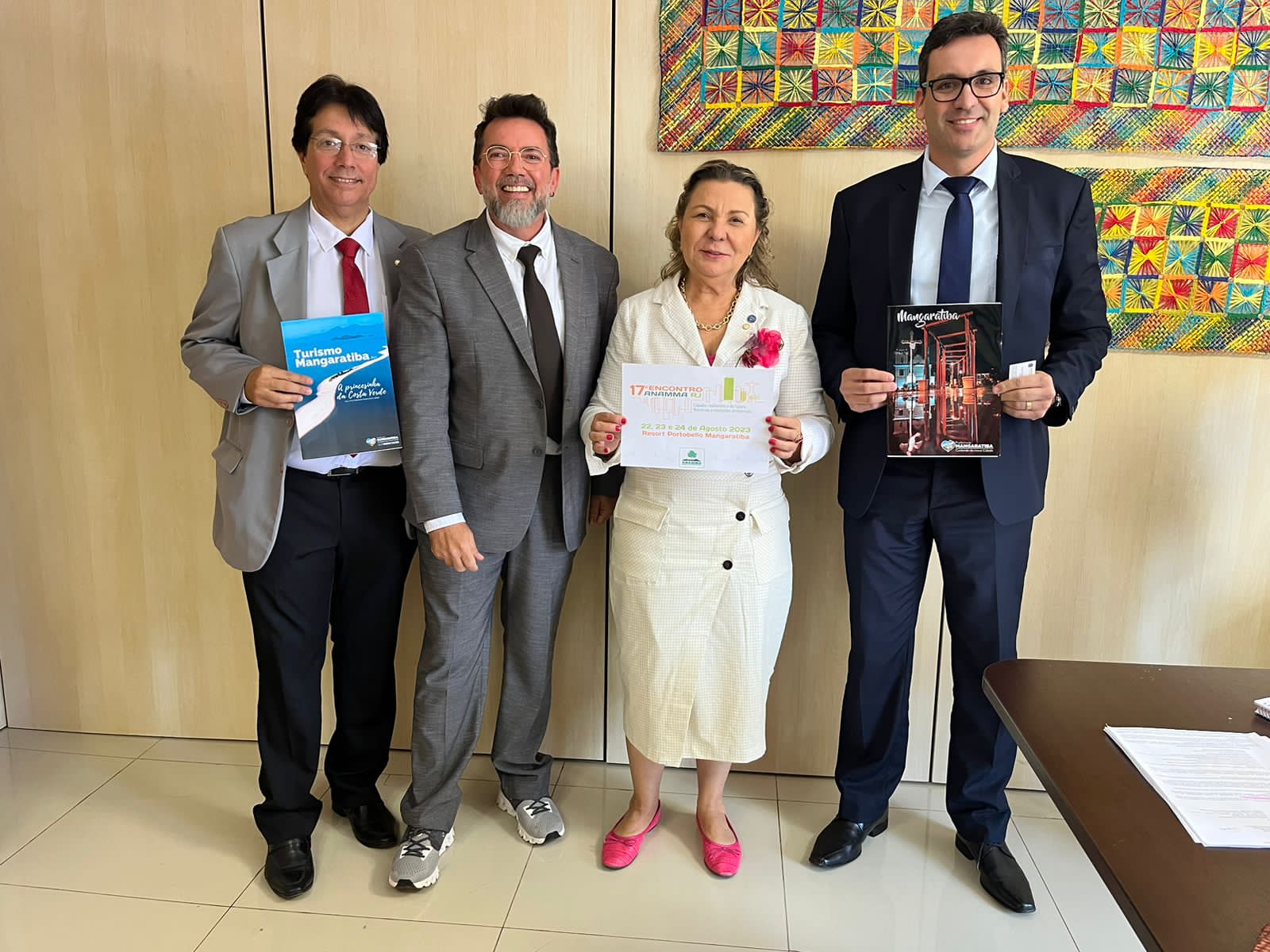 Impulsionam o evento, Marçal Cavalcanti, presidente nacional da Anamma; Antonio Marcos Barreto, secretário de Meio Ambiente de Itaguaí e vice-presidente nacional da Anamma; Tereza Nelma, secretária nacional de Aquicultura do Ministério da Pesca; e Alan Bombeiro, prefeito de Mangaratiba.