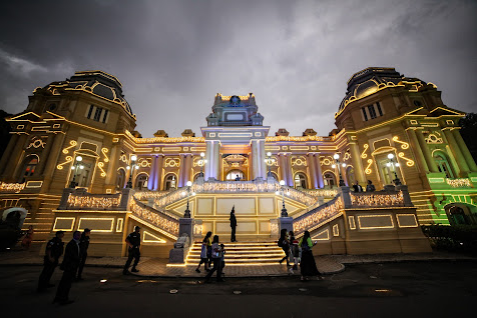 O governador Cláudio Castro inaugurou a iluminação natalina da fachada do Palácio Guanabara com 100 mil leds. A cerimônia contou com músicas de Natal entoadas pelo Coro Juvenil do Rio de Janeiro e contou com a participação da primeira-dama, Analine Castro, e de secretários de Governo.