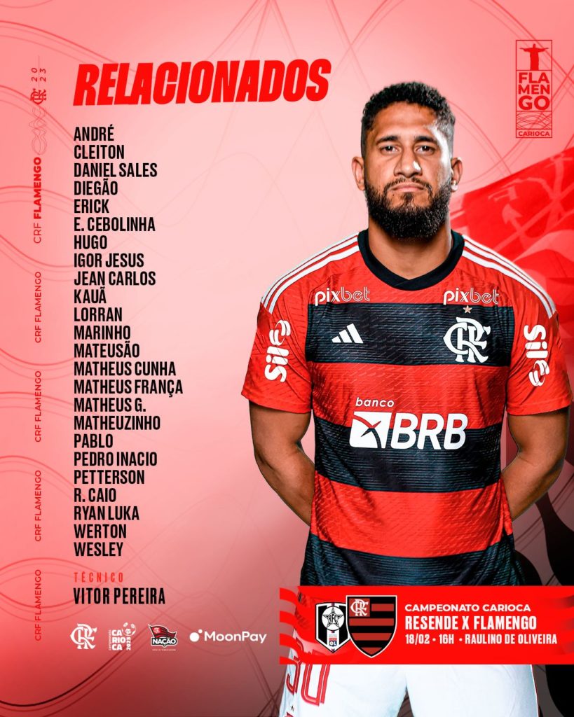 Sem titulares na lista, Flamengo divulga os relacionados para a partida contra o Resende