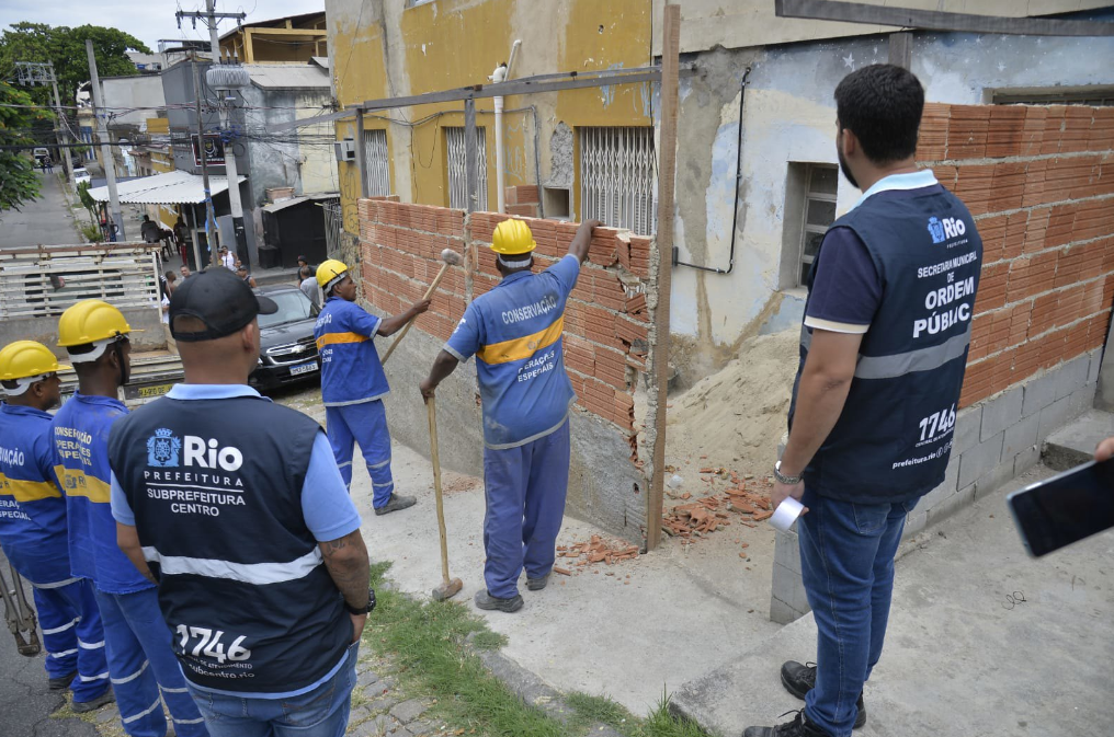 A Secretaria de Ordem Pública e a Subprefeitura do Centro do Rio demoliram sete construções irregulares, nesta segunda-feira (27), na Rua Jansen de Melo, no bairro de São Cristóvão.