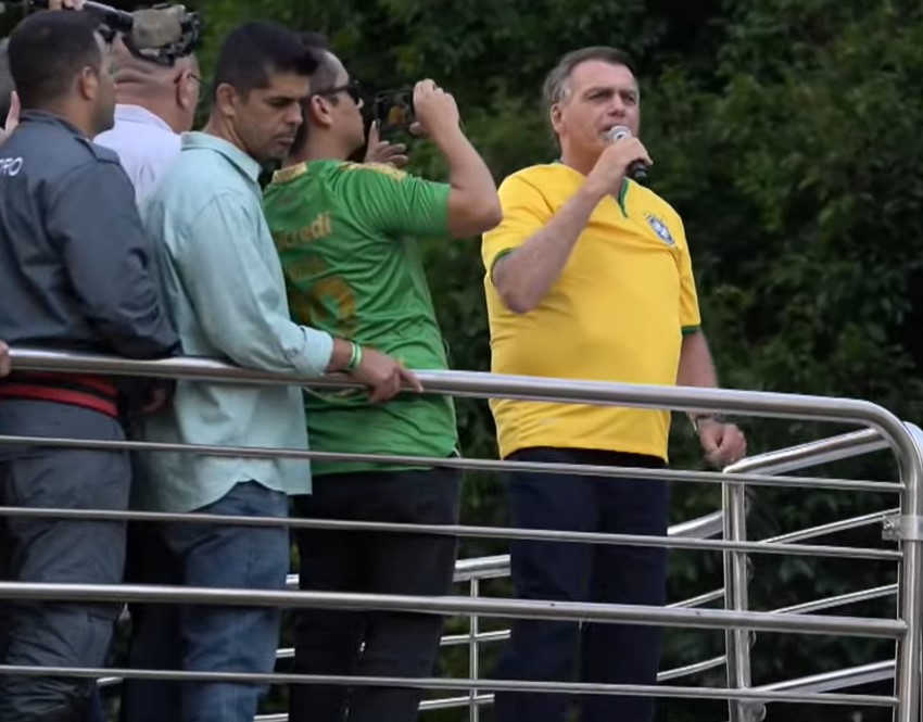 Vestindo colete balístico, o ex-presidente Jair Bolsonaro discursou para aproximadamente 700 mil pessoas durante manifestação na Avenida Paulista, em São Paulo. Ainda não há informações sobre quem forneceu o equipamento de proteção. De acordo com informações preliminares, Bolsonaro recebeu apoio de seguranças do governador Tarcísio de Freitas, ex-ministro da Infraestrutura.