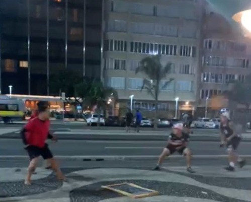 Mais de 20 torcedores do Flamengo e do Olímpia se envolveram, na noite desta quarta-feira (23), em uma briga generalizada em frente ao Quiosque Xodózin, na Avenida Atlântica em Copacabana, na Zona Sul do Rio.
