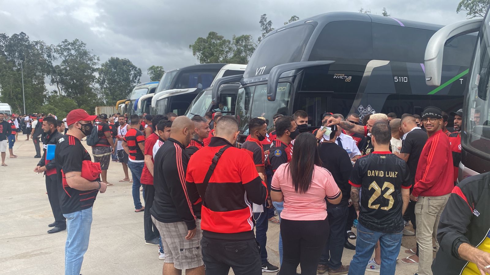 Na véspera da decisão da Libertadores da América, entre Flamengo e Palmeiras, em Montevidéu, torcedores rubro-negros, que estão em 20 ônibus, vivem um drama para entrar em solo uruguaio.