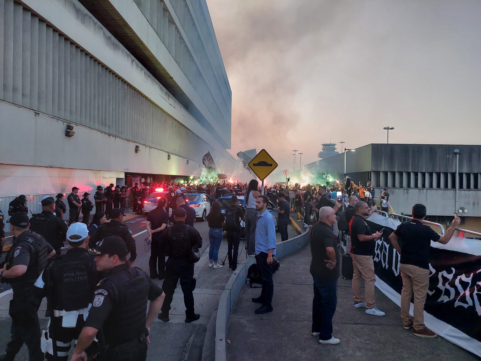 Os torcedores alvinegros cantaram músicas de apoio e levaram instrumentos musicais e sinalizadores para fazer uma grande festa na recepção da equipe.