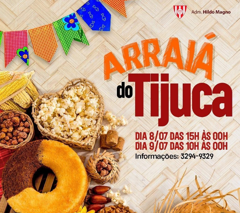 O Tijuca Tênis Clube anunciou sua tradicional festa junina, que acontece nos dias 8 e 9 de julho, na Rua Conde de Bonfim, número 451, Tijuca, Zona Norte do Rio. O evento conta com barraquinhas espalhadas por todo o clube com comidas típicas, brincadeiras, decoração temática, apresentação de quadrilha e muita música durante os dois dias de festa.