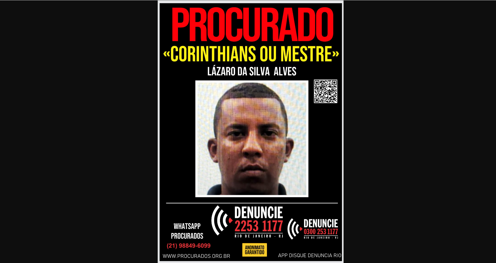 O Portal dos Procurados divulgou um cartaz que pede informações sobre o paradeiro do traficante Lázaro da Silva Alves, mais conhecido como ‘Corinthians’, chefe do tráfico de drogas na comunidade Barro Vermelho, em Duque de Caxias, na Baixada Fluminense.